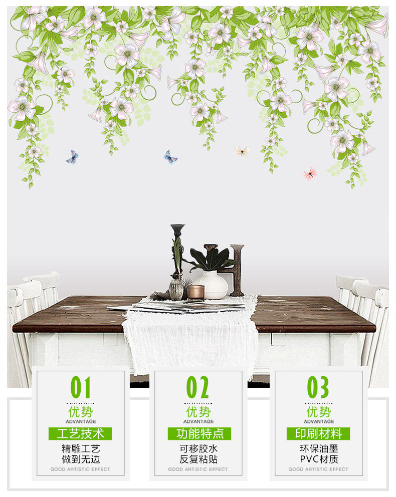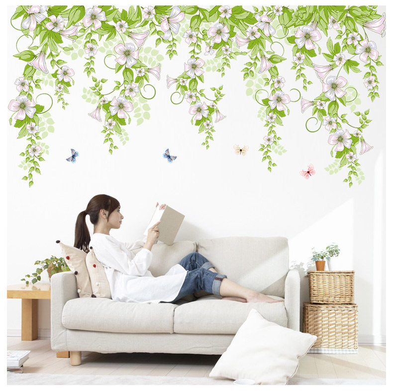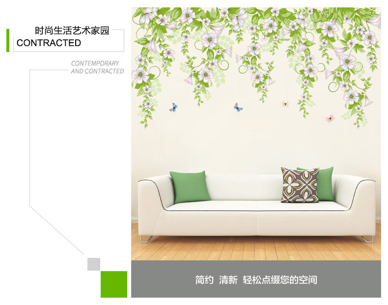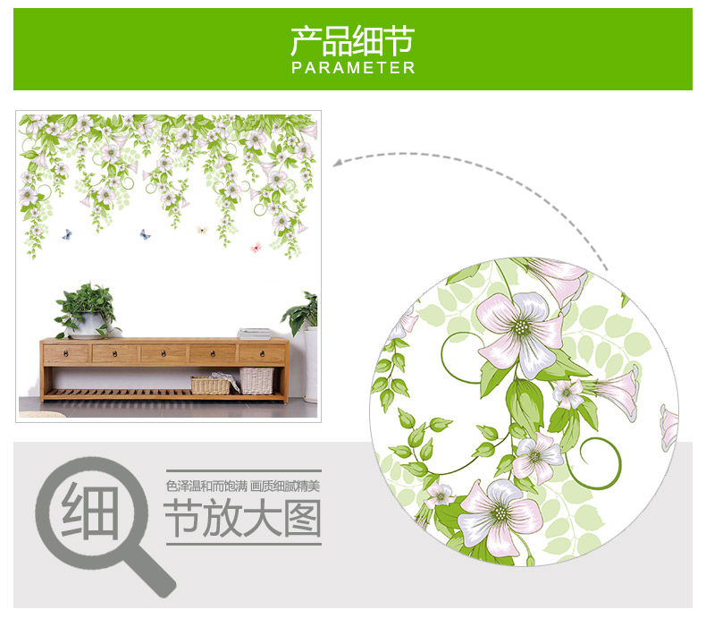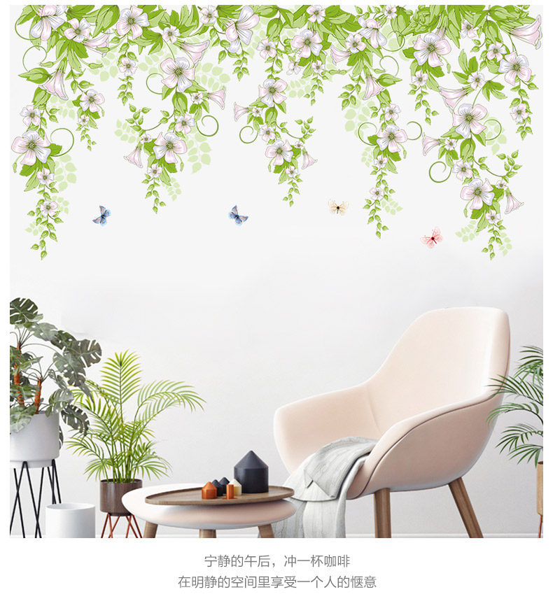 小清新牵牛花蔓藤墙贴卧室房间创意温馨装饰贴纸客厅墙纸自粘贴画
