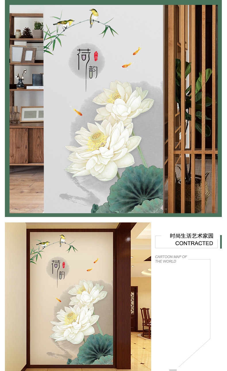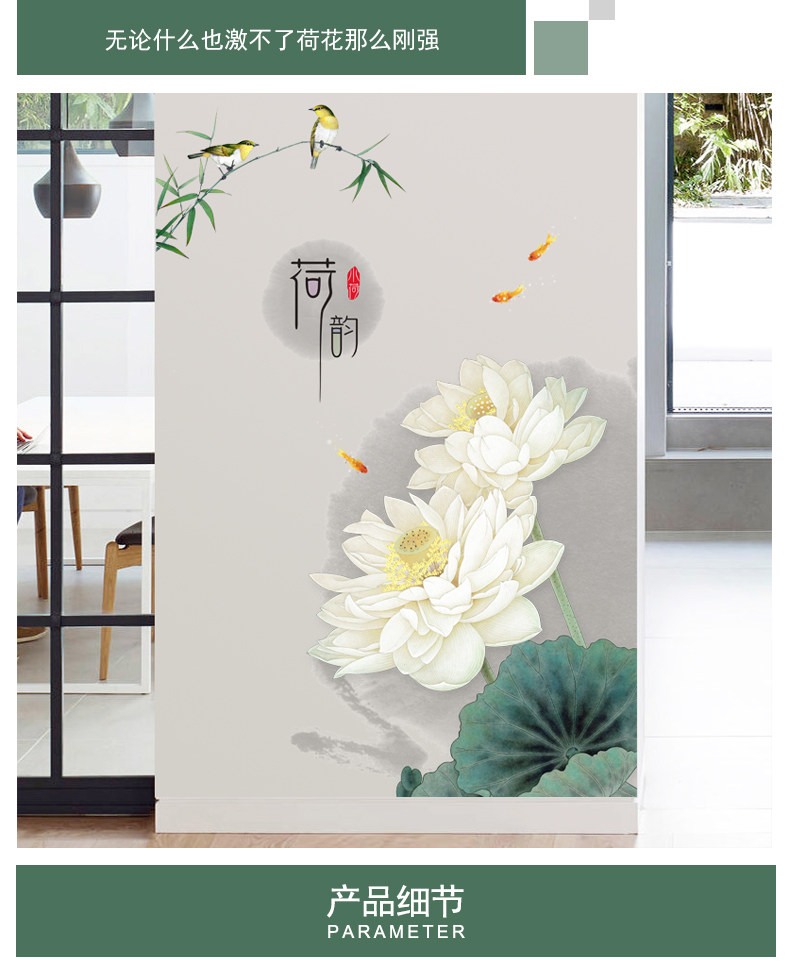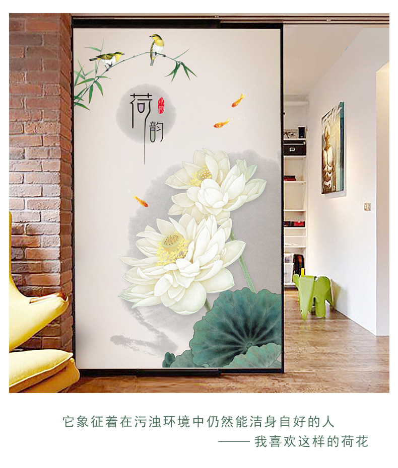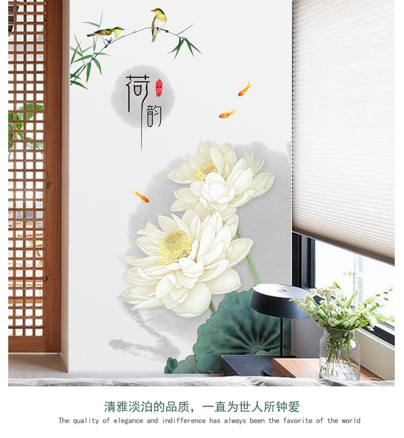 荷花玄关墙画贴纸墙壁装饰自粘墙纸贴画客厅卧室房间墙上温馨墙贴