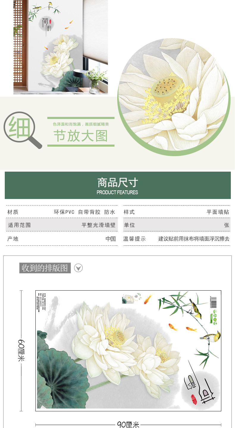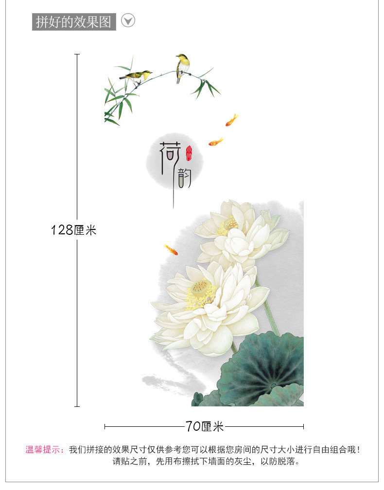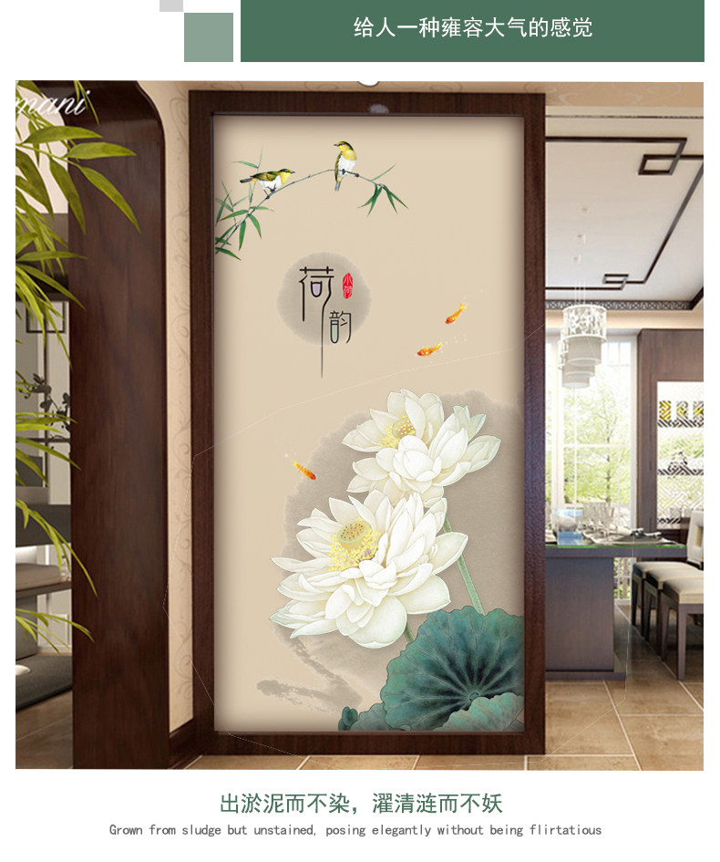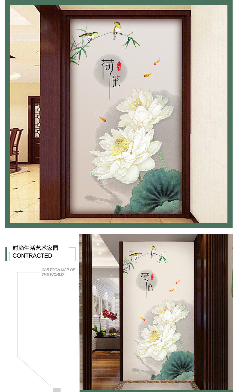 荷花玄关墙画贴纸墙壁装饰自粘墙纸贴画客厅卧室房间墙上温馨墙贴