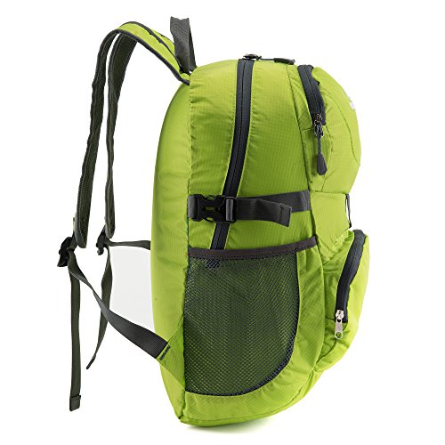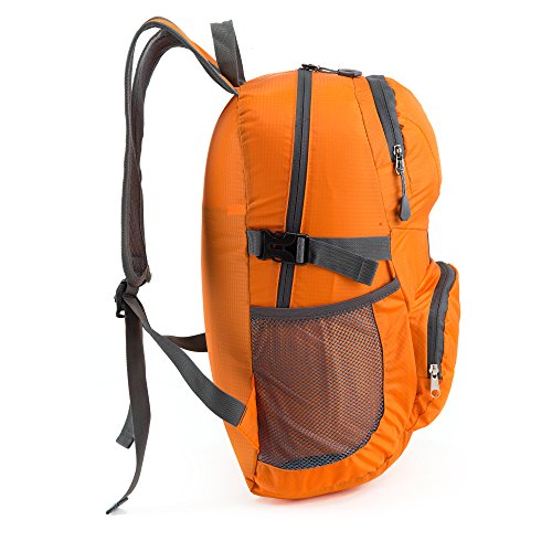-. Feature : Durable for long-time use:Our travel backpack is made of high quality water resistant and tear resistant material.High intensity nylon material makes it more convenient to carry more load on your trips.Durable 2-way Abrasion Resistant SBS Metal Zipper across the backpack. / Comfortable to wear: S-shaped air cushion shoulder straps help relieve your shoulder stress. Adjustable shoulder length, free to adjust to ideal length. / Ultral lightweight (0.54LB) and roomy (35L).Foldable and easy for carrying,convenient and can save much space as well. / Compact: Product Dimensions: Approx. 14.5H x 11.5W x 5D inches. Three zippered compartments. Main pocket is large enough to carry what you need.Outer smaller pocket great for quick access such as guide brochure and camera.Inner zippered pocket which doubles as the storage pouch is perfect place for valuables such as cash, credit cards and passport.Two large side mesh pockets for water bottles or umbrella. / Perfect for both daily and outdoor activities.Use it as a carry on for your excess baggage,perfect for day trips,vacation,travel,day hikes,school,camping and shopping.