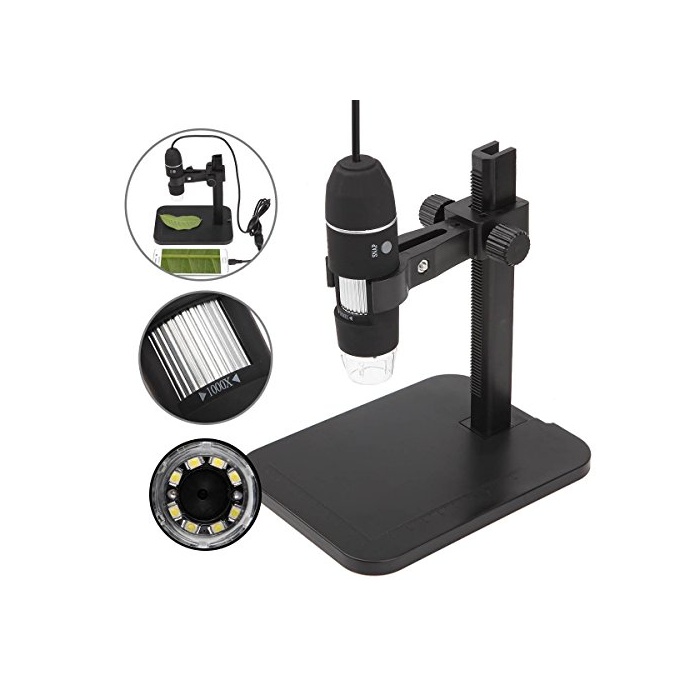 HLMY USB현미경 1000배 디지탈 현미경 8 개LED및 조절 가능 스탠드 부착USB접속 현미경 확대경--피부 검사,공업 검사,생물학 검사 등 적용, Windows XP / V