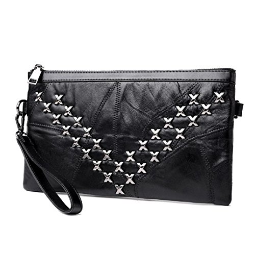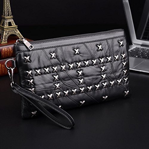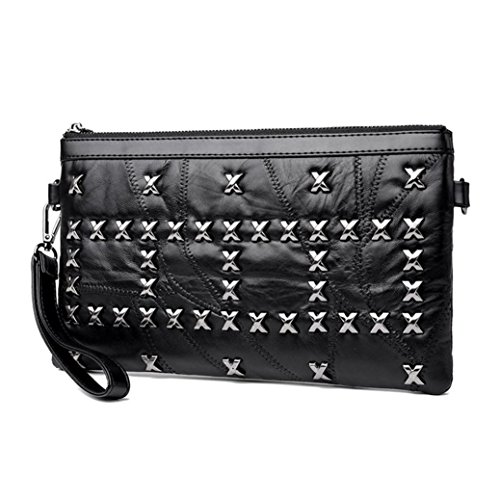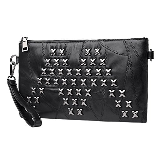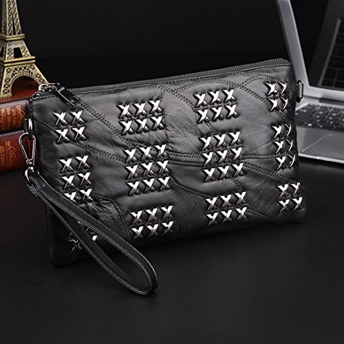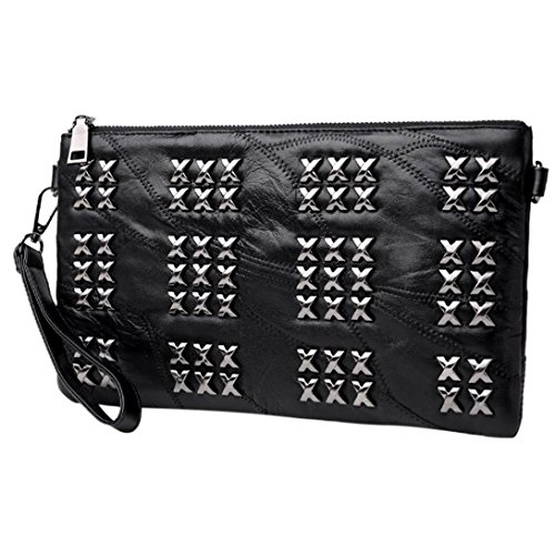 (Freshzone)/Accessories/Handbags/DIRECT FROM USA/Women Black Rivets Handbags Lady Leather Zipper Shoulder Bags Messenger Bags Crossbody Bag