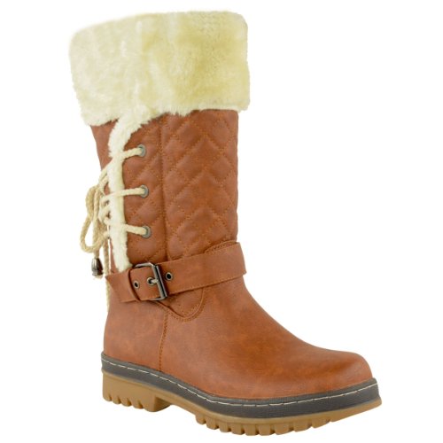 - Title : Fashion Thirsty Womens Ladies Fur Lined Girls Calf Quilted Knee High Flat Winter Snow Boots Size