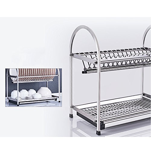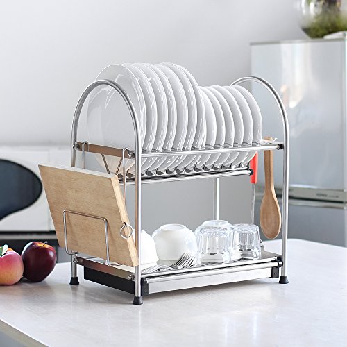 Removable stainless steel drainning tray collects water from the rack to dry items quickly and to prevent growth of bacteria, classic sleek design fits different styles of kitchen & adds a beautiful landscape to the kitchen