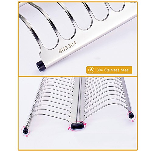 The curved stainless steel handles on both sides make it easy to lift and move the drainer. Padded with plastic feet protectors to prevent scratches to the counter and to keep the rack in place