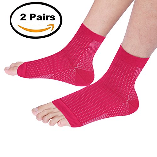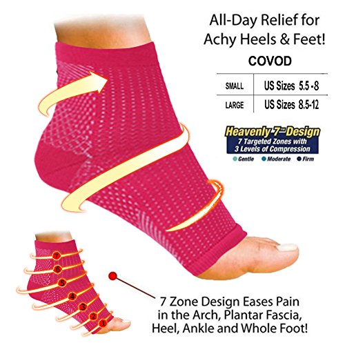 ★ANKLE SLEEVE THAT RELIEVES PLANTAR FASCIITIS: Covod ankle socks support features Covod on the bottom of the sleeve that helps to relive plantar fasciitis pain by compressing the plantar fascia ligament. ANKLE BRACE WITH GRADUATED COMPRESSION, TARGETED Covod AND ADVANCED ANKLE SUPPORT: Our Covod sleeves design provides support in the ankle area without restricting motion, also improves circulation, reducing inflammation and expediting the healing process.