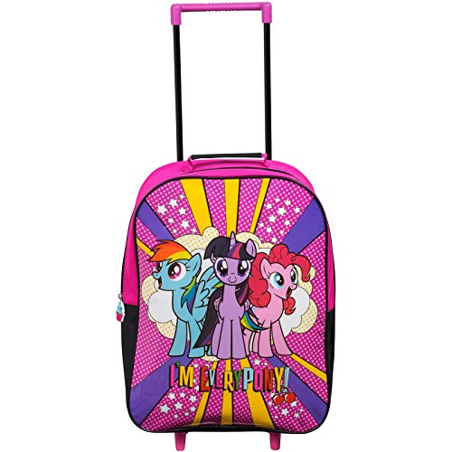 This My Little Pony Wheeled Trolley Bag is ideal for holidays and sleepovers when your little one wants to have a suitcase of their very own! The trolley bag consists of one main zip closing compartment with a handy wipe clean front panel that features a great image of Rainbow Dash, Twilight Sparkle and Pinkie Pie?on a pretty pink patterned background. It also features two wheels with two feet on its base to stabilise the bag and an extendable handle for easy transportation. 0 |