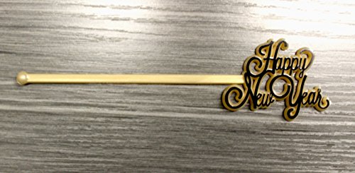 Studio : Royer Corporation Publisher : Royer Corporation Product Description These festive Happy New Year swizzle sticks are perfect for parties that will bring in 2018! This stir stick design features elegant, gold plastic with black stamped on the text. Perfect for cocktails and mixed drinks served at New Year's parties and events, our American-made stirrers are sure to delight guests. These versatile and visually appealing stirrers are proudly made in the USA by Royer Corporation, the industry's leading custom stirrer and cocktail pick manufacturer since 1977. 0