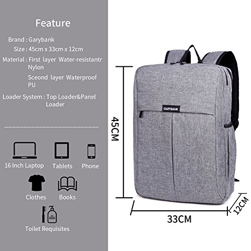 Garybank Waterproof Laptop Backpack For Women Men Both Top Loader and Panel Loader Slim Business Backpack Good For College School Travel Shoulder Tech Bag Up to 16" Laptop & Notebook