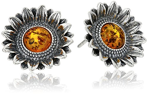 -. Title : Amber Sterling Silver Sunflower Earrings