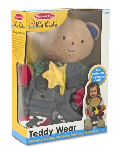 -. Feature : Made using the highest quality materials / Tested to be safe and durable / Great fun for your baby and child / Dressing-activity plush bear with a mix of fastenings to develop fine motor skills / Overalls and shoes are removable / Satiny ears, paws and zipper pull encourage proper grasp / Part of Melissa & Doug K's Kids line of early developmental toys / Great for these skills: sensory, fine motor, gross motor, logical, linguistic, emotional, communication, self-esteem