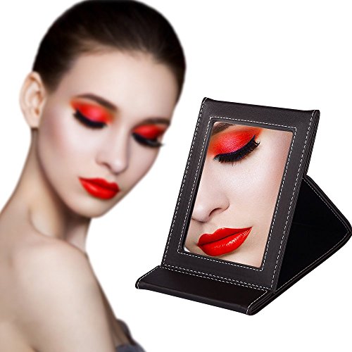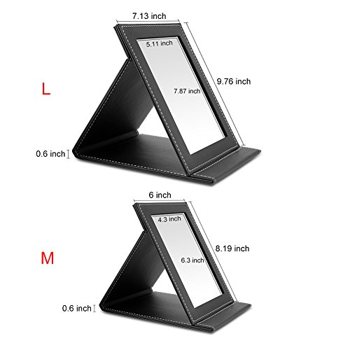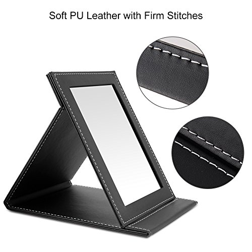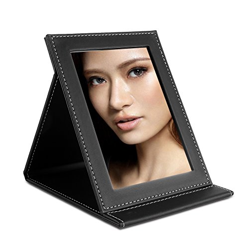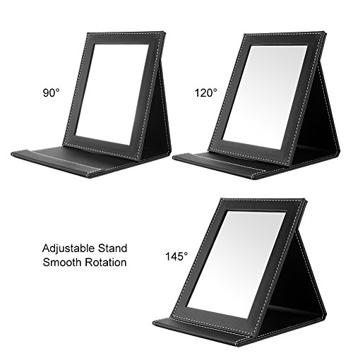 TASIPA Makeup Mirror Vanity Mirror, Folding Tabletop Mirror with PU Leather Cushioned Cover,Compact Mirror with Adjustable Stand (Large)
