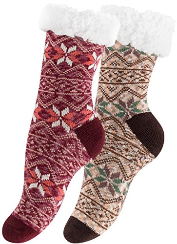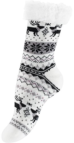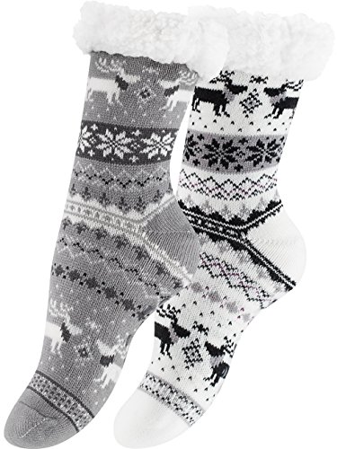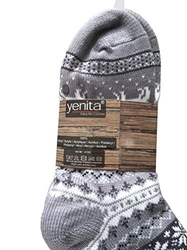 -. Feature : Cottage Socks | Ladies Warm Thick Knit Slipper Sock | Super Soft Fleece Lined With Gripper Soles | Deer or Snowflakes Pattern / Chunky Knit, Cosy and Super Soft | Maximum Comfort | Fluffy Thermal Fleece Lining for Maximum Winter Warmth / Anti slip bottom allows you to walk on smooth ground | Silicon rubber grips on soles of socks prevent slips and falls on smooth floors / Perfect for wearing Indoor around the house, Cottage or Office | best gift for yourself or your friends / Yenita® Germany, Exclusive by CottonP.R.Ime | Please visit our Storefront for our full range of Womens, Mens, Childrens Socks and Underwear