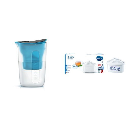 BRITA ブリタ 浄水 ポット 1.0L カートリッジ 1個付き スリム エントリーモデル ファン ブルー 【日本仕様・日本正規品】+ カートリッジ 3個入り セット