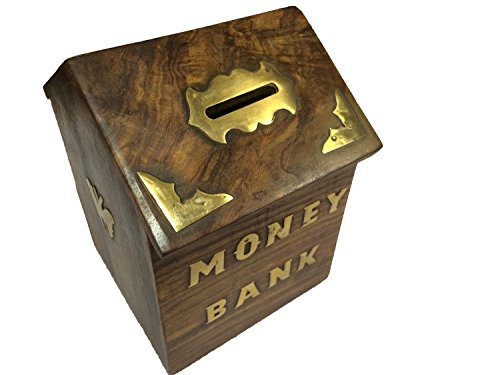 Special valentine day gift, Wooden Coins Storage Box, 5 Inch Piggy Bank, Hut Shape Money Bank with Butterfly Inlay on Two Sides and Lock to Store your Money, Money Banks For Kids & Adults