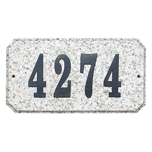 -. Feature : Made of solid granite / Fits up to five 4" numbers / Black polymer numbers 0-9 twice / Adhesive glue and mounting hardware included in the box / Dimensions: 1 x 13 x 7 inches Weighs 3.5 pounds