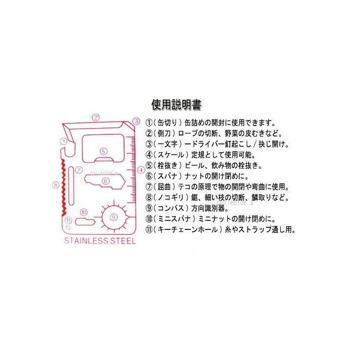 내용:방위 자석 fire 스타터 구조적 카드형 만능 툴 서바이벌 툴 나이프 와이어 톱
