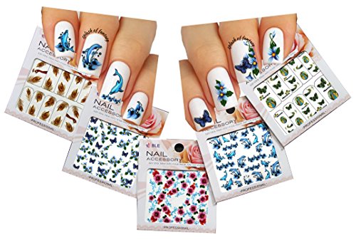 5 Beautiful Nail Art Water Tattoo Stickers