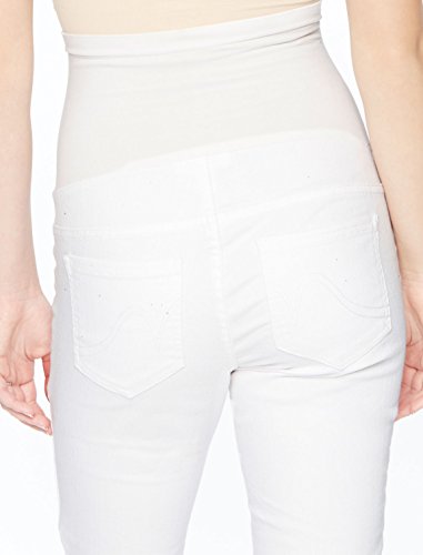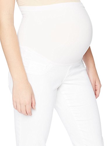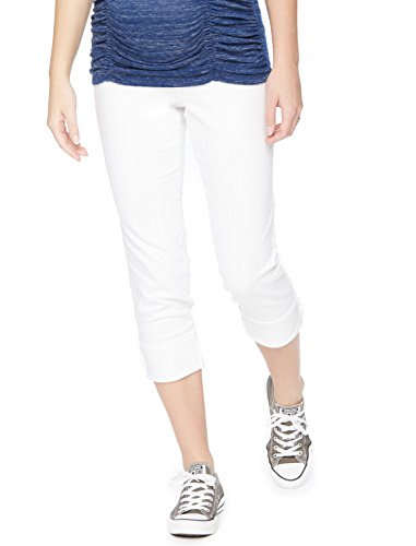 MATERNITY CROP JEANS SECRET FIT BELLY (R) US Patent Nos RE43563 RE43531 7814575 and 7900276 WHITE DENIM FAUX FRONT POCKETS CUFFED 23 1/2 INCH INSEAM COTTON / SPANDEX TWILL MACHINE WASHABLE IMPORTED