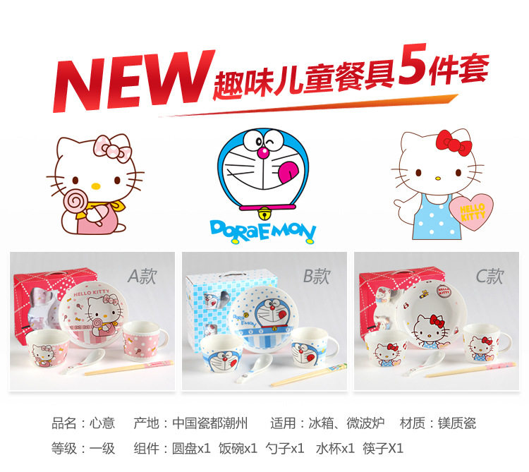 【产品名称】:Doraemon 哆啦A梦 机器猫 叮当猫 KITTY猫 陶瓷卡通餐具 儿童餐具 六件套