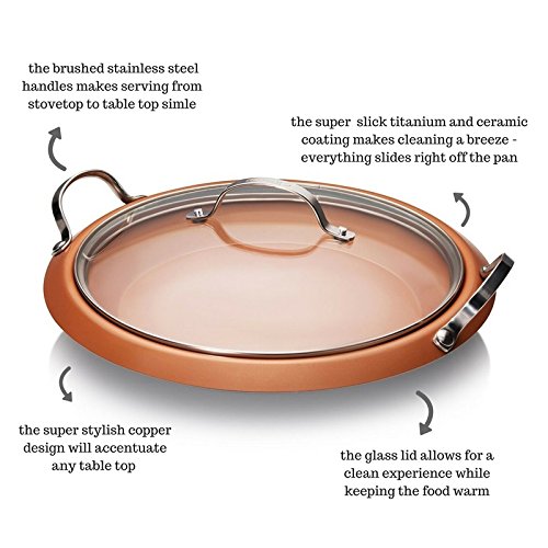 Gotham Steel titanium and ceramic non-stick 12" all purpose Pro pan deliver effortless food release to let you prepare a wide variety of food. No oil or butter needed for healthier cooking. Ti-cerama cooking surface faqs high-heat threshold to sear perfectly browned steaks! everything just slides right off, even burnt chocolate and cheese. Food flavor is not altered when cooking tomato-based or any acidic food products thanks to the ceramic component! the non-stick surface cleans easy! versatile: for stove-top cooking, or baking! rust-proof all over coating doesn't peel off with constant usage and washing. Our guarantee not satisfied with your purchase? just tell us, and we will fix things for you.Feature