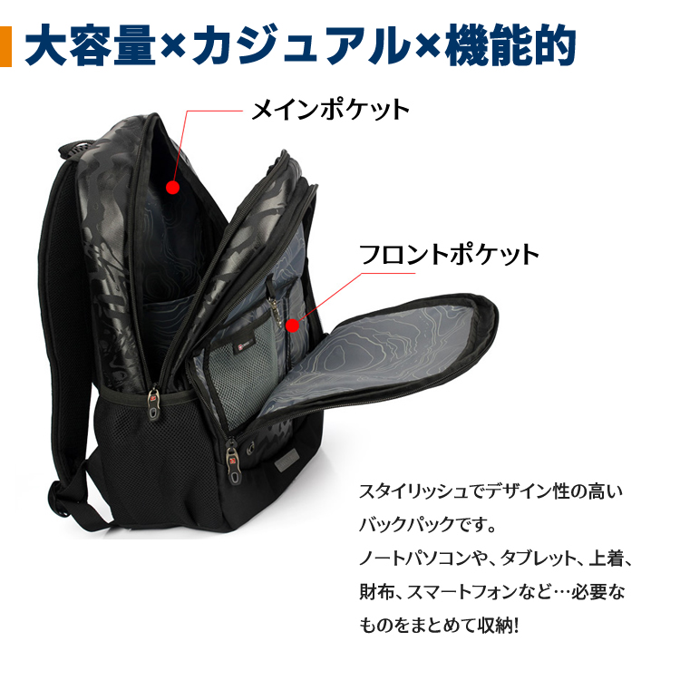 ■スタイリッシュに設計された形で、合わせるアイテムを選ばず、多目的に使えるバックパック。