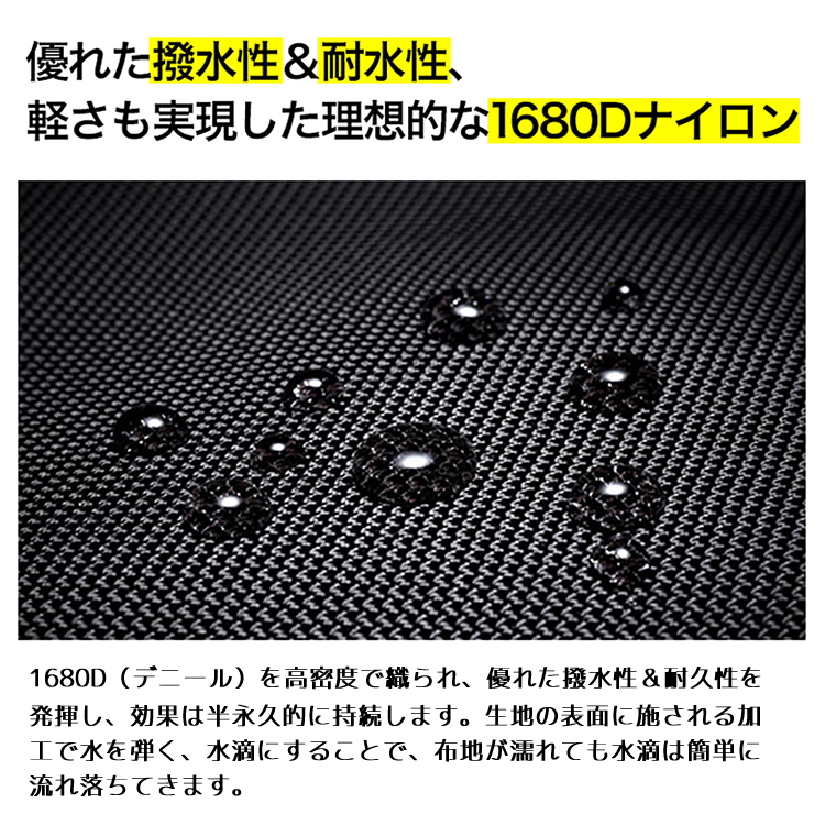 外側:1680D ballistic nylon(バリスティック ナイロン)+Polyester(ポリエステル)