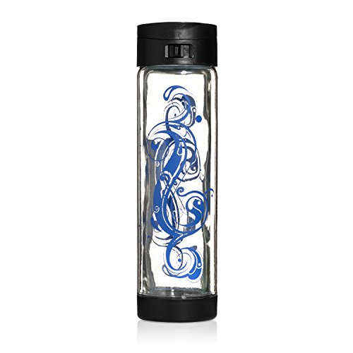 Designed Shatterproof Glass Water Bottle - 16oz - Double Walled - Tribal Ying Yang and Black Flip Cap