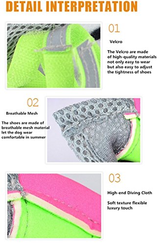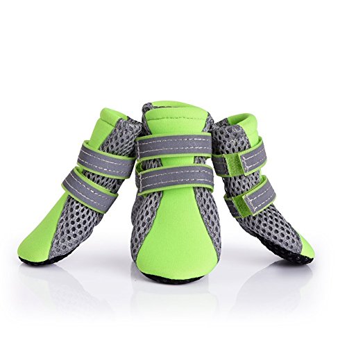 Feature Material: mesh fabric Type: dogs shoes Net weight: 1.4oz Color: apple green Package list: one set with 4pcs of dogs shoes