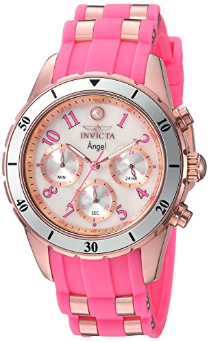 Invicta Women's 'Angel' Quartz Stainless Steel and Silicone Casual Watch, Color Pink (Model: 24900)