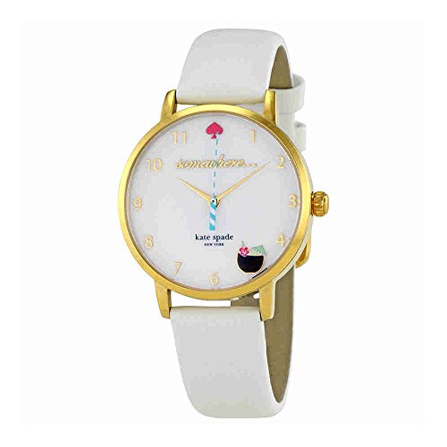 -. Feature : "Somewhere" Mai Tai Gold tone White Leather Band Watch