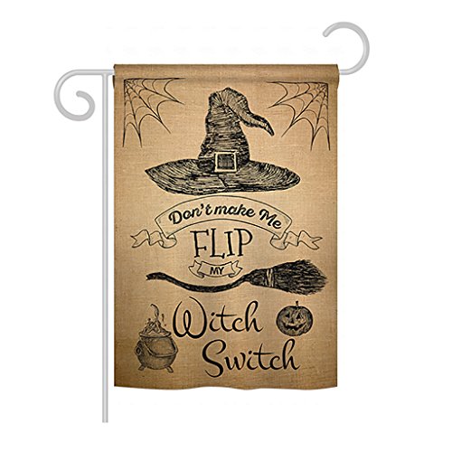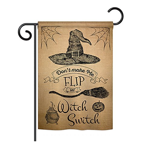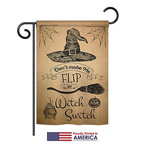 -. Binding : Kitchen -. Brand : Ornament Collection -. Color : Mutli -. EAN : 0740812209832 -. Feature : made of durable polyester 300 d construction helps resist the wear and tear from frequent use / double-sided P.R.Int design on garden flag provides viewing correctly readable single side / double stitching panels on multiple rows and high quality sleeve to provide lasting strength / Vibrant colors with UV-resistant maintains its colors all season long / Fits all standard Hardware flagpoles or stands, sold separately -. Label : Ornament Collection -. Manufacturer : Ornament Collection -. Model : HO-G-191031-IP -. MPN : OC-HO-G-191031-IP-P300-DS01-US -. NumberOfItems : 20 -. PartNumber : OC-HO-G-191031-IP-P300-DS01-US -. ProductGroup : Lawn & Patio -. ProductTypeName : OUTDOOR_LIVING -. Publisher : Ornament Collection -. Size : 13"x 18.5"x 0.2" -. Studio : Ornament Collection -. Title : Flip my Witch Switch - Fall Halloween Decoration - 13" x 18.5" Impressions Garden Flag by Ornament Collection - US made -. UPC : 740812209832