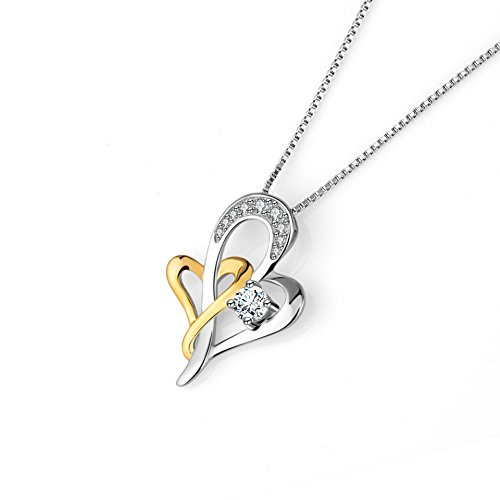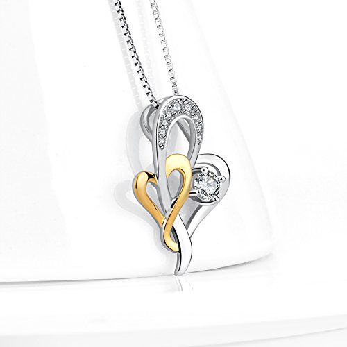 -. Feature : "Sparkly Love",Double Heart Pendant Necklace / Material:925 sterling silver and cubic zirconia / Pendant size:23.9*16.6 mm,Chain length:18 inch / Great gift for Mother's day! Good gift for your family, Friend, Lover, Girlfriend,any special person you love. / Satisfaction Guaranteed: 30 days free risk money back to protect you when you receive any fake or defected order, welcome to test our jewelry