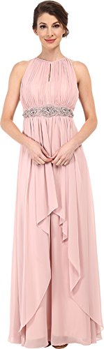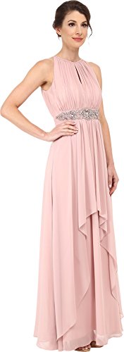 Sparkling beads embellish the sleeveless, empire waist silhouette. Halter-style, split neckline ties at the nape of neck. Hidden zip closure in the back. Floor-sweeping hem. Fully lined. 100% polyester. Hand wash cold, hang dry. Imported.