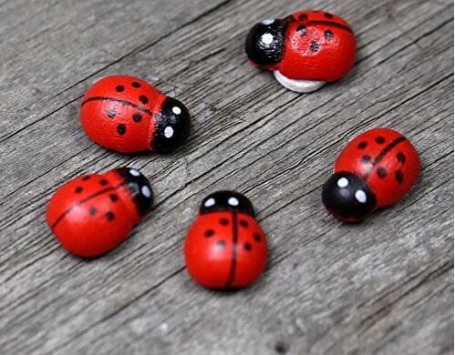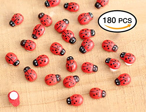 HoneyToys 180Pcs Painted Wooden Ladybug/Self Adhesive/Craft/Decorations/Home Decor/Plants 10x13mm (Red)
