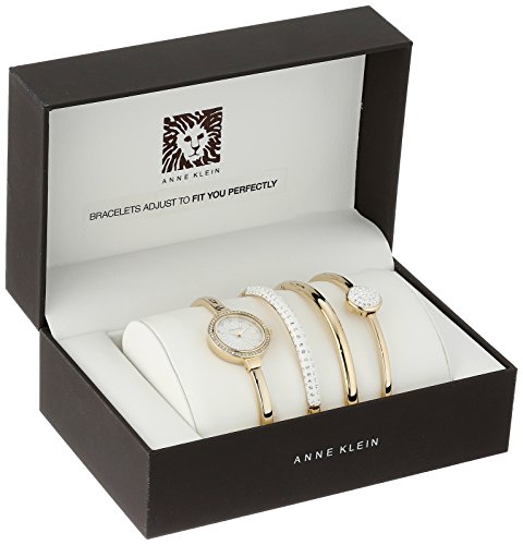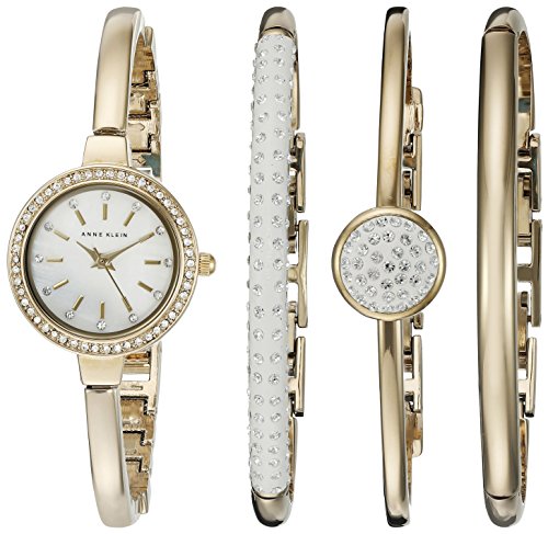 Anne Klein Women's AK/2240GBST Swarovski Crystal Accented Gold-Tone Bangle Watch and Bracelet Set