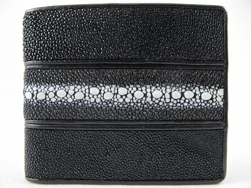 -. Title : PELGIO Genuine Row Diamond Stingray Skin Leather Bifold Wallet Black
