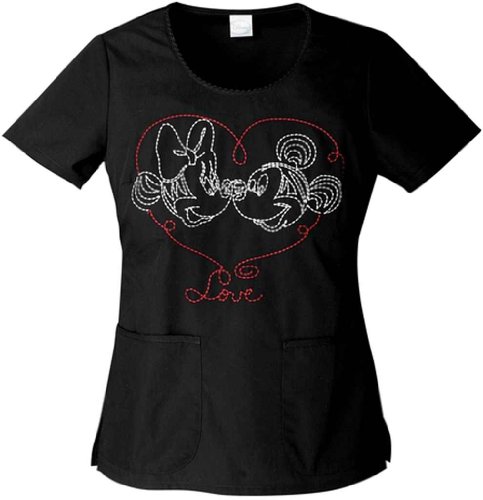 Tooniforms 6755 Women's Round Neck Embroidery Scrub Top Minnie In Love