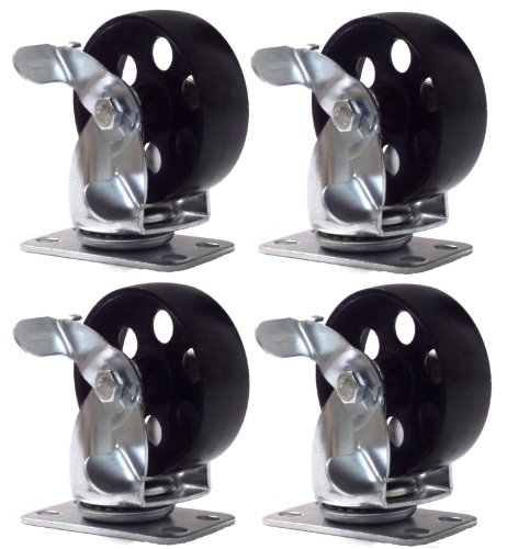 4 Large All Steel Swivel Plate Caster w Brake Lock Heavy Duty 3.5" Wheel 1500lb