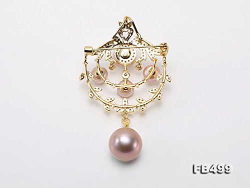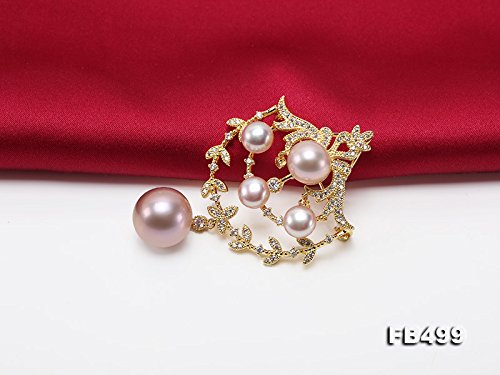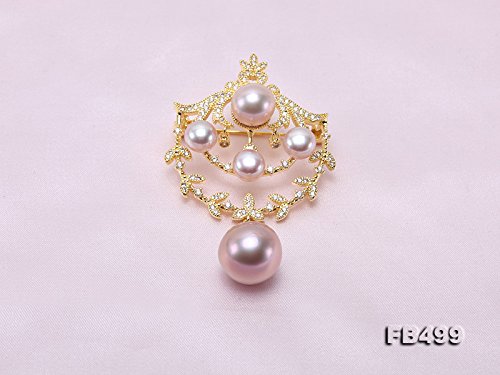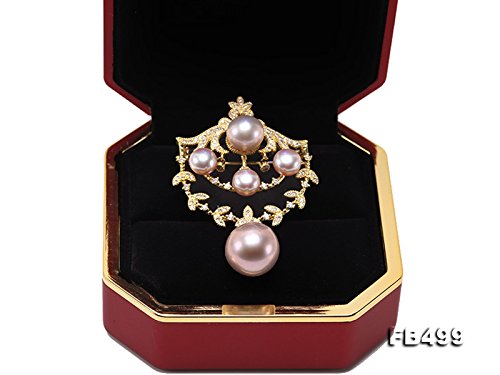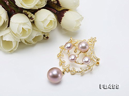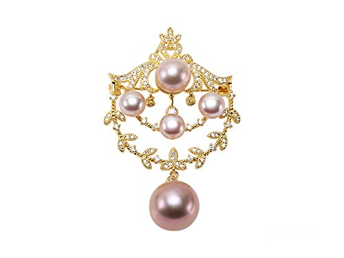 -. Feature : Luxurious and retro pearl brooch, made with high quality lavender freshwater pearls and shiny zircons in beautiful chandelier style. The top pearl is 9.5mm, middle pearls are 7-7.5mm, and biggest bottom pearl is 15mm. All the pearls are round, smooth and lustrous / Pearls are known as "the queen of gems" and rightfully so, as they symbolize unblemished perfection, modesty and purity. It is said that promises of health and longevity follow those who are adorned with pearls. / The unparalleled beauty of nature's lustrous pearl has aroused passion, desire and fascination from all ends of the earth since before recorded history. / We have several major pearl cultivation farms in China, our product categories vary from all styles of freshwater and saltwater pearl jewelries to dozens of semi-gemstone varieties.you are welcome to order in bulks and great offers will be provided. / Any question or request on our pearls quality, size, setting, metal type, please feel free to contact us! We are always here to help you.
