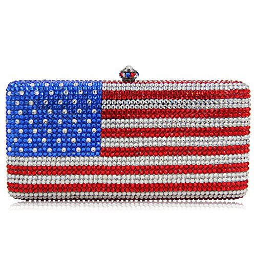 -. Title : Milisente American Flag Full Crystal Clutch Purses for Women Evening Handbag