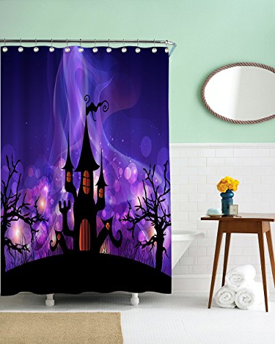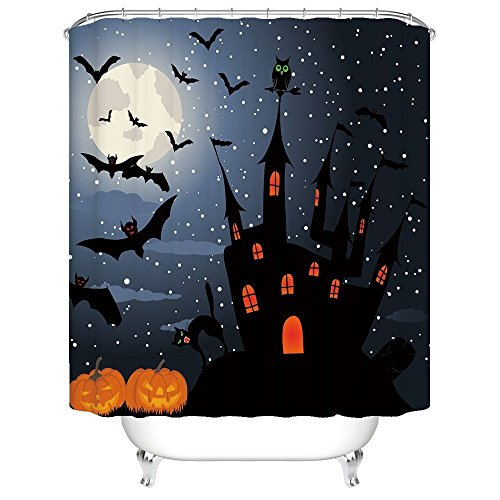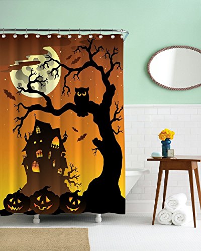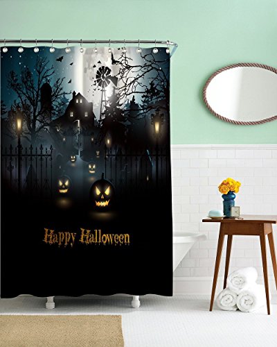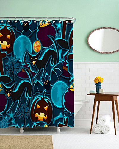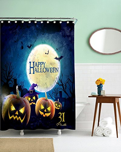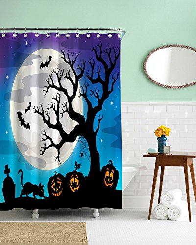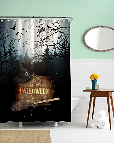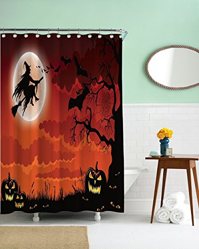 -. Title : CHARMHOME Halloween Night Theme Flying Witch Pumpkin Witherbark Decorative Bathroom Mildew Resistant Fabric Waterproof Antibacterial Shower Room Decor Shower Curtains 72 x 72