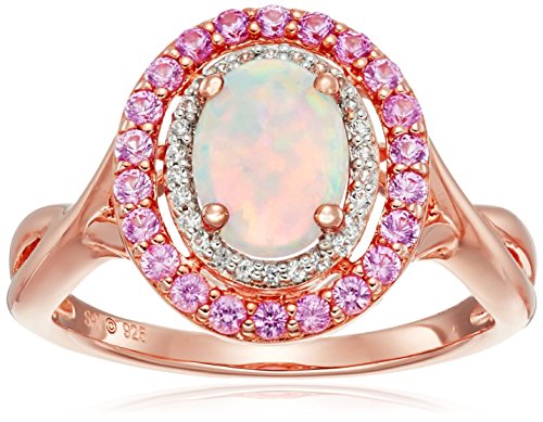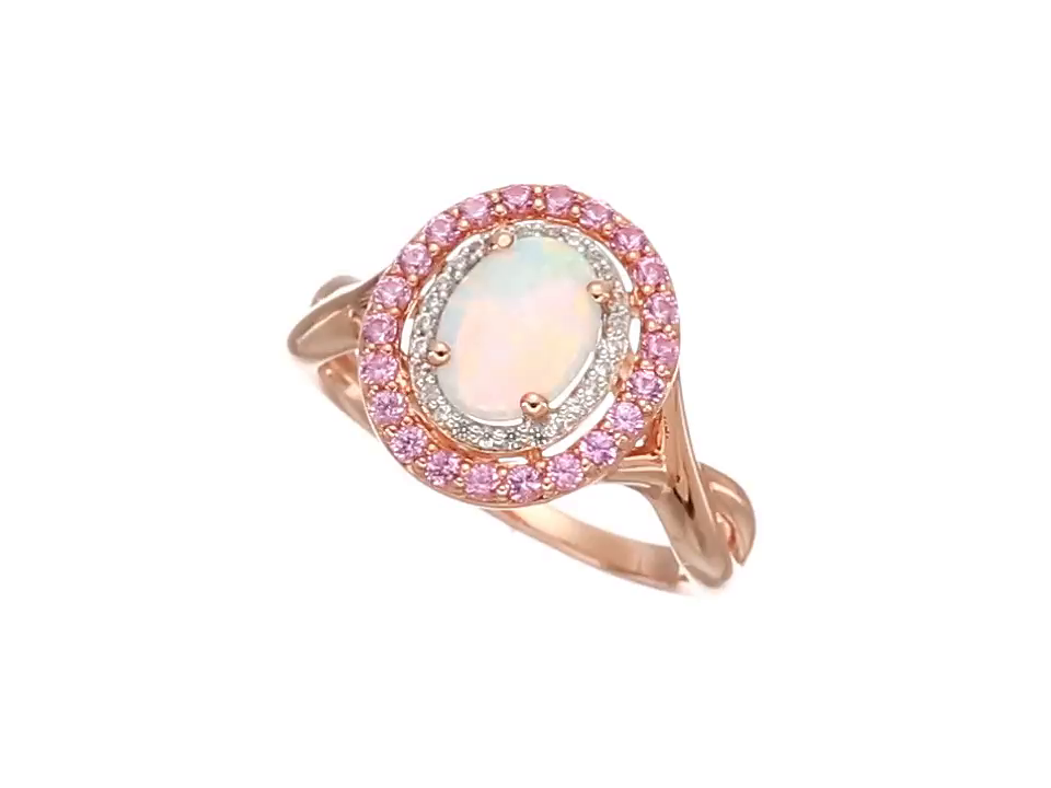 Sterling Silver with Pink Gold Plating Lab Opal, Lab Pink Sapphire and Lab White Sapphire Ring, Size 7