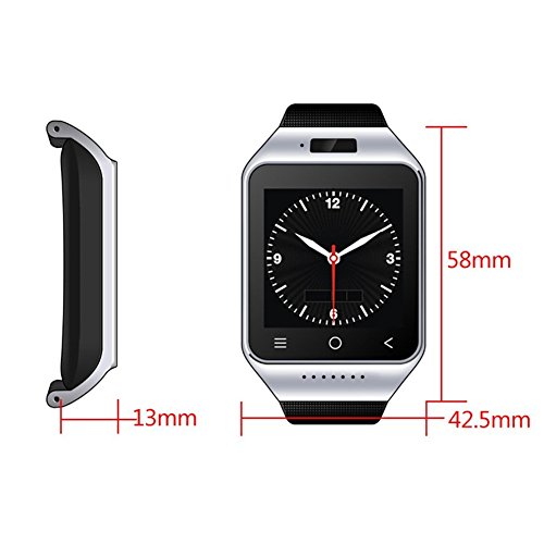 -. Feature : 3G:WCDMA 2100, 2G: GSM 850/900/1800/1900, It's also a mobile phone / 1.2G Dual Core CPU,GPS Navigation, WIFI,Bluetooth,FM,Recorder / 1.54 inches capacitive touch Screen, 240*240 Screen Resolution / Android 4.4 smart system, Bluetooth 4.0 Support all android APP softwares / 5.0M Prepositive camera