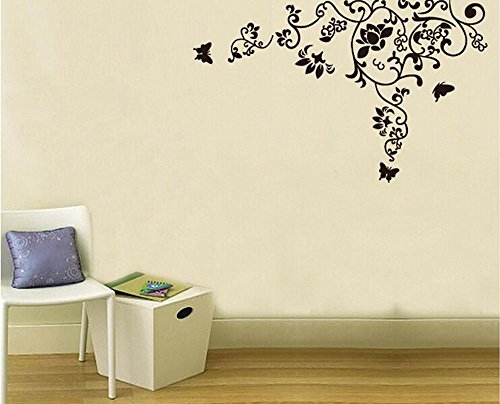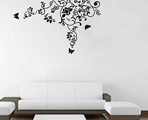 Amaonm Black Removable Nursery Flowers Flower Vines Wall Decal Butterflies Home Art Decor Decorative Diy Wall Stickers Murals for Girls Kids Bedroom Living Room Playroom Offices TV Background