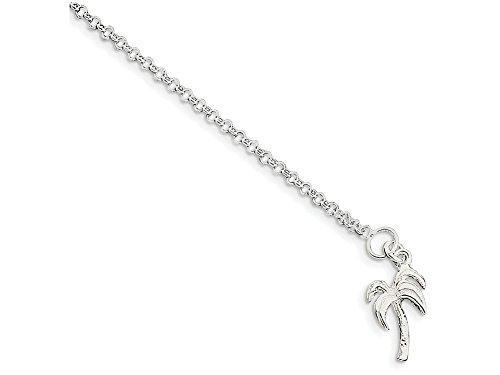 -. Title : Sterling Silver 10inch Solid Polished Palm Tree Anklet