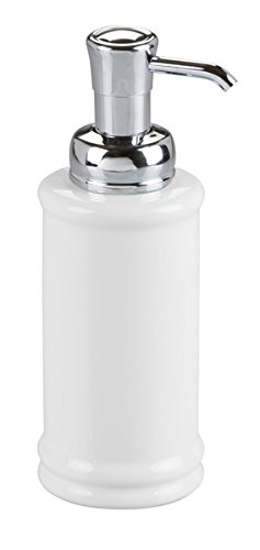 mDesign Liquid Hand Soap Ceramic Dispenser Pump Bottle for Kitchen, Bathroom | Also Can be Used for Hand Lotion & Essential Oils - White/Chrome