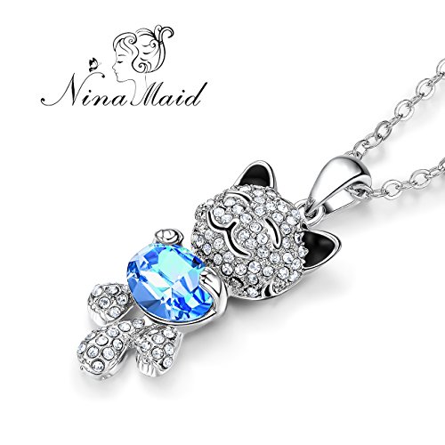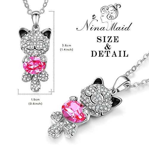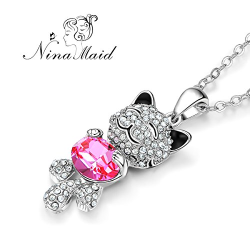 -. Feature : ★Design Inspiration★ The cat is a cute animal. And it is the symbol of good luck. Just as its name implies, this necklace can bring good luck to the wearer. The crystals embellishment over it looks so gorgeous that let you get many compliments while wearing. It is a perfect choice to express your love. / ★Swarovski Crystal★ The necklace is made with Swarovski crystal. Crystal is supplied by Swarovski but used by our own designers and manufactured in our own workshops. It belongs to NinaMaid, not Swarovski. Our necklace is decorated with light-catching crystals from Swarovski, which make the jewelry sparkling, elegant and absolutely eye catching. / ★Specifications and Material★ Chain Length: 16 inch + 2 inch extension. Pendant Height: 1.4 inch. Pendant Width: 0.6 inch. Main Stone: Swarovski crystal. Stone Shape: Oval. Metal: Eco-friendly gold plated alloy, lead-free & nickel-free. No harm to health. / ★Perfect Gift★The necklace comes with a pretty white box. It is the perfect gift for girls and women. It is suitable for most of occasions. You can give it to your friends or family on Birthday, Anniversary, Valentine's Day, Mother's Day, Thanksgiving Day, Christmas, etc. This necklace is absolutely a best gift for you to express your love to the person you love the best. / ★Warranty★ Quality assurance and 60 day money back guarantee. As a reliable seller on Amazon, our policy is make customers 100% satisfaction with our products and service. We will be responsible for any product problem. No hassle or hard feelings. If you are not entirely satisfied with your purchase for whatever reason we will offer a full refund or replacement within this period.