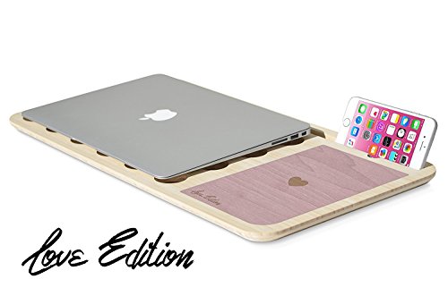 Perfect For Her: Slate Love Edition is gorgeous. It's built with beautiful bamboo, hand-dyed Pink Rose hardwood, and includes a special edition engraving. It's a highly functional workspace for your sofa, bed, favorite coffee shop, or anywhere comfortable.