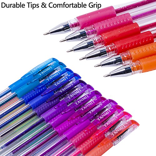 Comfortable Coloring Pen Set: We think colored pens should be comfortable especially when you hold them in your hands for a long time. This is why we add a soft rubber grip to our gel pens. You will find it easier to work on your projects without suffering from fatigue even if you work for extend periods of time. Enjoy our Tanmit glitter gel pens as they help you melt the stress away. Give them a try